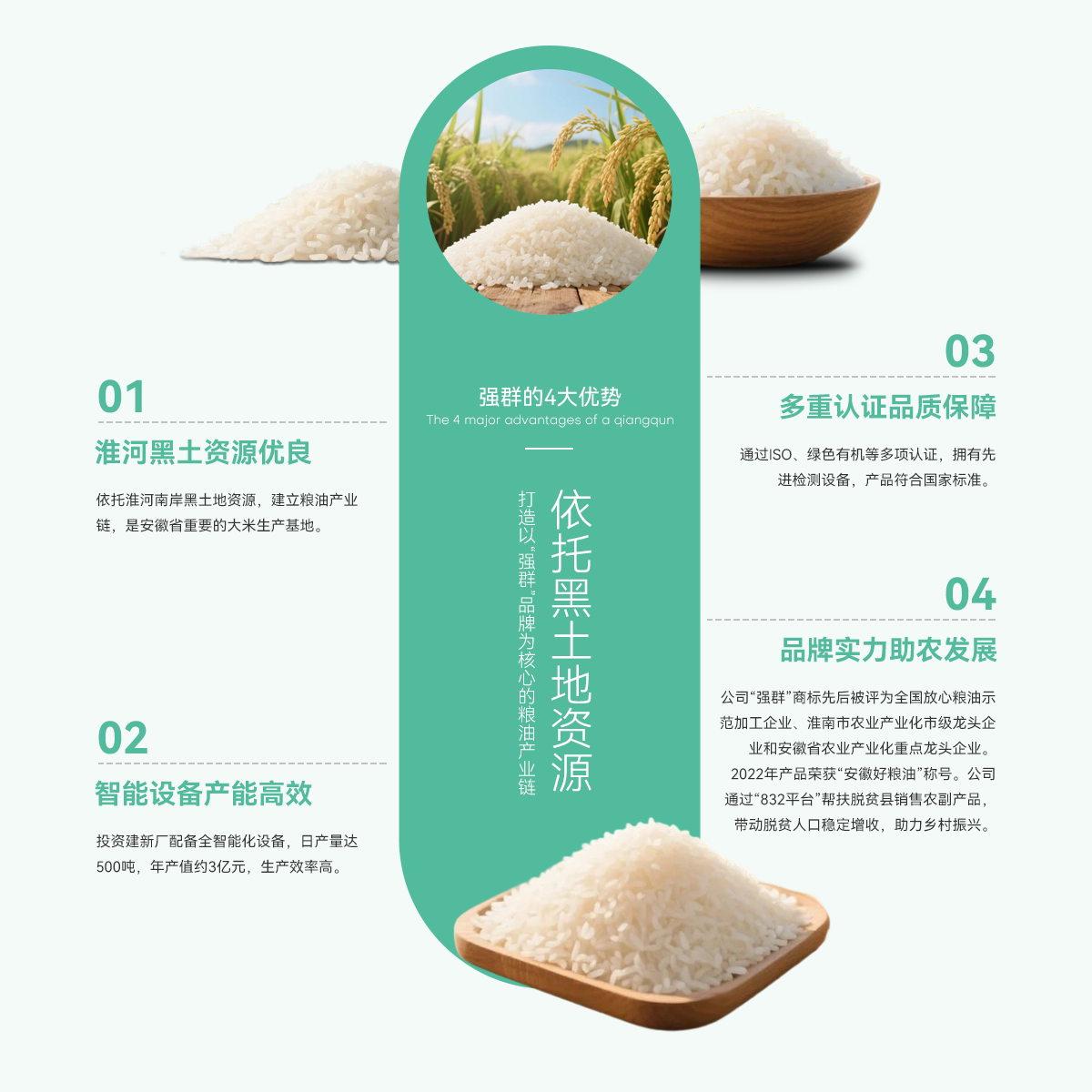 - 壽縣強(qiáng)群糧油貿(mào)易有限公司成立于2011年,座落在淮南市壽縣澗溝鎮(zhèn),是一家集種植、加工、收儲(chǔ)、銷(xiāo)售于一體、以生產(chǎn)中、高檔質(zhì)優(yōu)、特色類大米為主的綜合性企業(yè)。公司依托準(zhǔn)河南岸的黑土地資源,打造以“強(qiáng)群”品牌為核心的糧油產(chǎn)業(yè)鏈,是安徽省重要的大米生產(chǎn)基地。 為響應(yīng)市場(chǎng)增長(zhǎng)需求,公司2021年啟動(dòng)二期擴(kuò)產(chǎn)工程,其中新生產(chǎn)廠區(qū)建設(shè)投入資金近億元,建設(shè)現(xiàn)代化新生產(chǎn)線,總占地面積約4000...